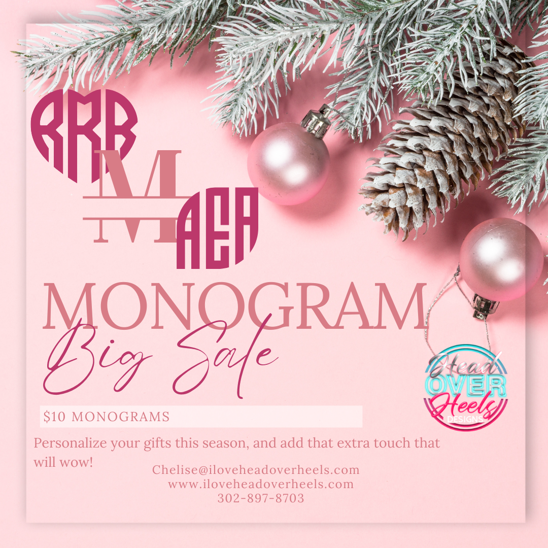Create your own personalized monogram! This option is a wonderful addition to give your gifts a high-end feel this year. Wow your friends and family with personalized monogram gifts. Not sure what can be monogrammed? Sweaters, towels, blankets, crewneck sweatshirts, denim jackets, pajamas, and so much more! All items are subject to approval prior to monogramming. Take a look at the options below and place your order before December 17th!